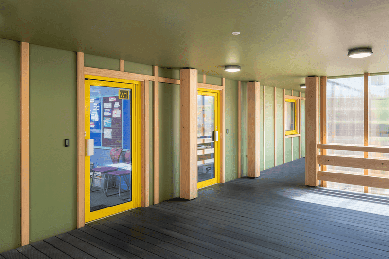 Das neue Gebäude der Heathlands School hat dank der individuell eingefärbten Hardie® Panels ein dauerhaftes, frisches Design, sowohl innen als auch außen. Sie erfüllen auch die hohen Anforderungen an den Brandschutz und die Stoßfestigkeit.